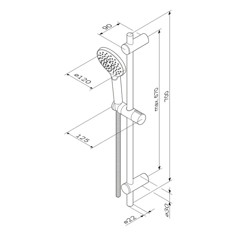 - Диаметр душевой лейки 120 мм