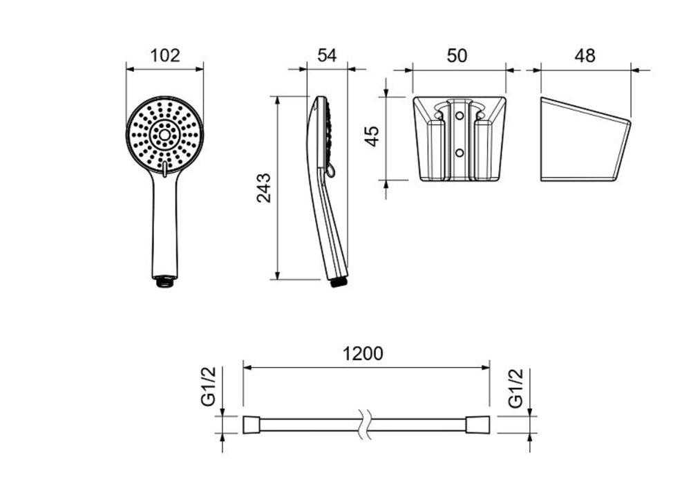 Душевой гарнитур Aquatek Бетта AQ2032BGM, 3 режима струи, черный хром шлифованный