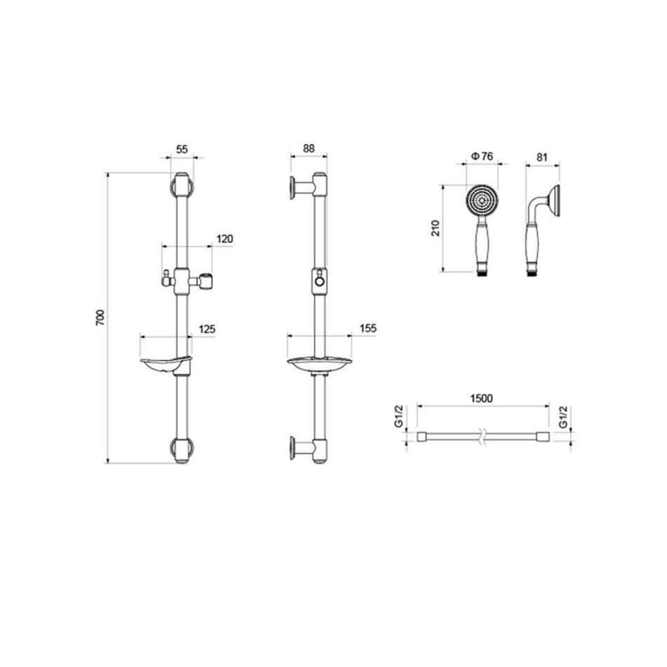 Душевой гарнитур Aquatek Классик AQ2020PG, цвет золото полированное