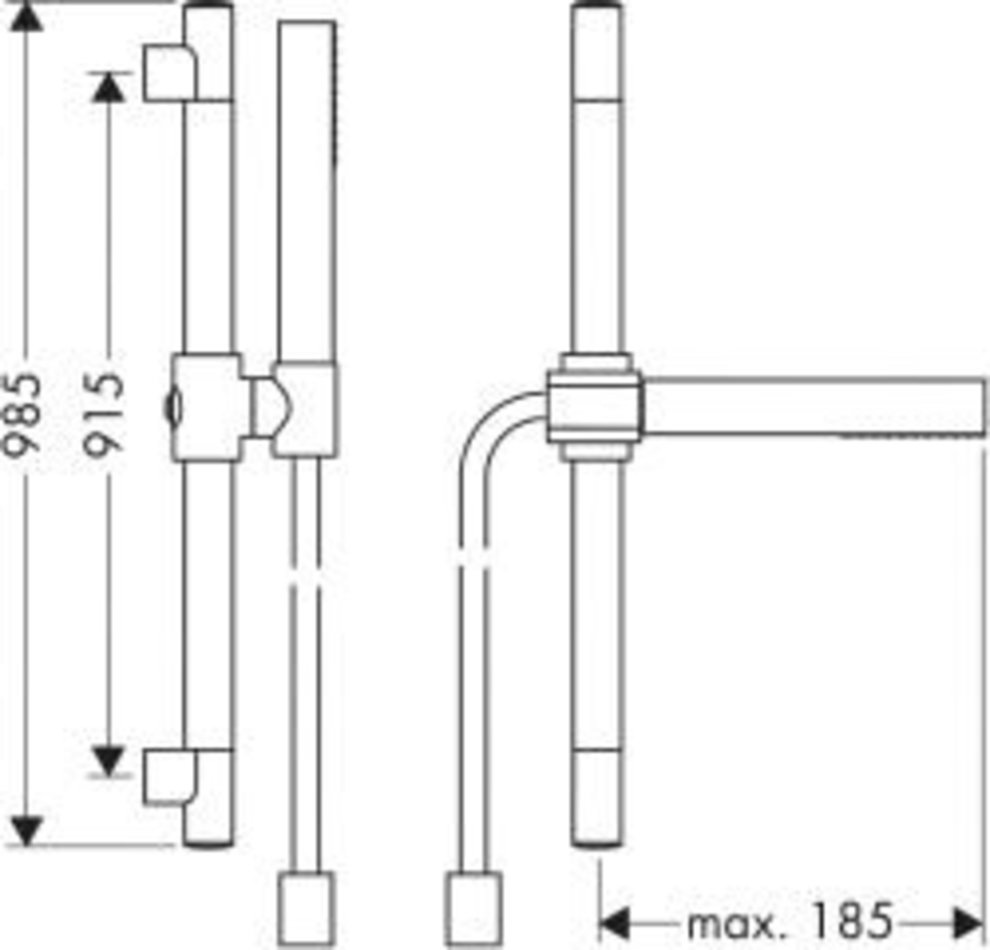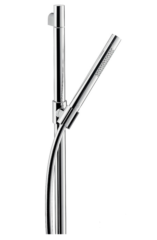Душевой гарнитур Axor Starck ( Старк ) 27980. Настенная штанга 0,9 м с держателем для шланга и шлангом 1,6 м, упорные подшипники с двух сторон, пошаговое передвижение держателя, угол наклона душа по горизонтали 180°, ручной душ Starck.
