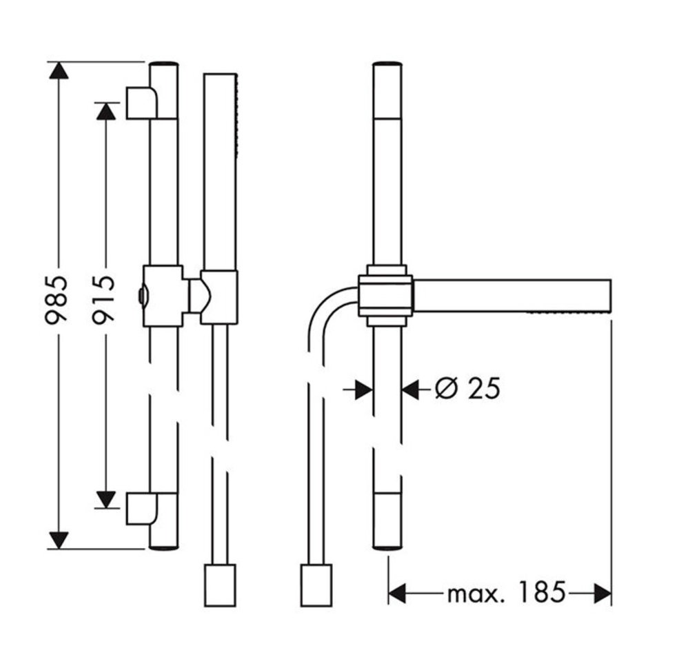 - Шланг с металлическим эффектом 1,60 м ½’x ½’ (28286000): с цилиндрической гайкой с обеих сторон; со стороны душа упорный подшипник, предотвращающий перекручивание душевого шланга;