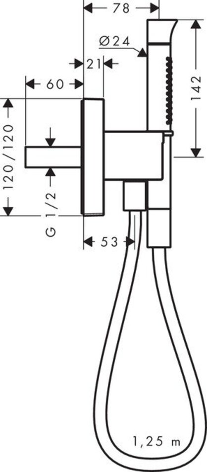 Душевой гарнитур 12232000 Hansgrohe Axor Starck Organic с держателем для лейки и выводом воды из стены