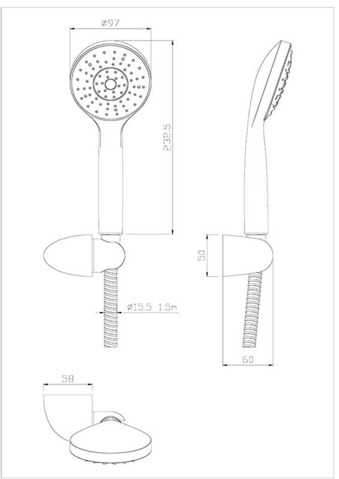 Состав поставки: Настенный держатель, шланг, лейка ручного душа.
