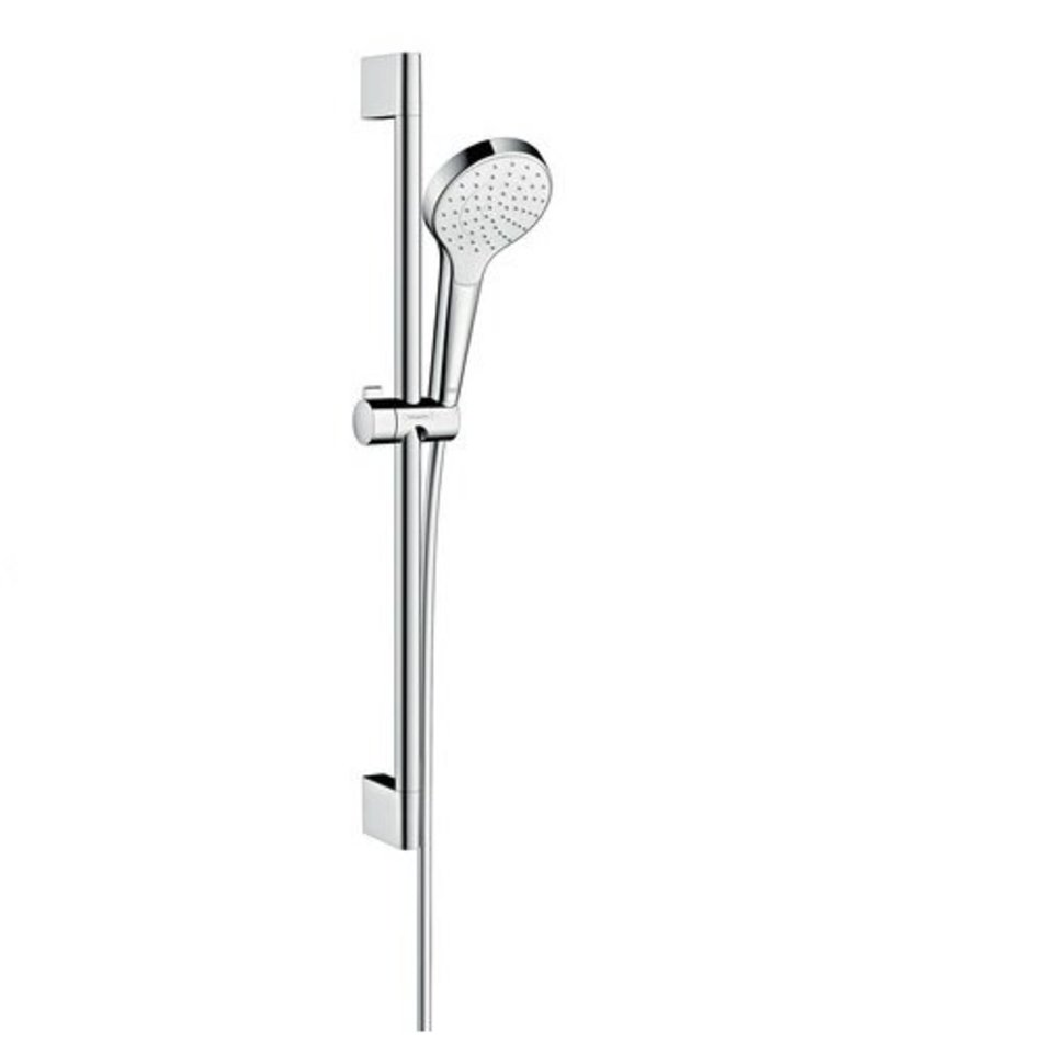 Душевой гарнитур Hansgrohe Croma Select S 1jet EcoSmart 26565400, штанга 65 см, корпус хром, лицевая часть белая