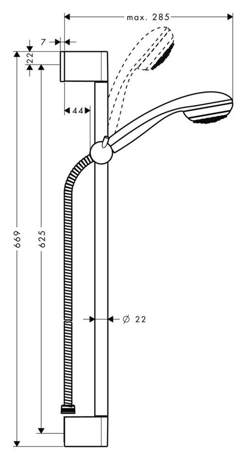 Душевой гарнитур Hansgrohe Crometta 85 Multi 27767000, штанга 65 см, корпус хром, лицевая часть серая