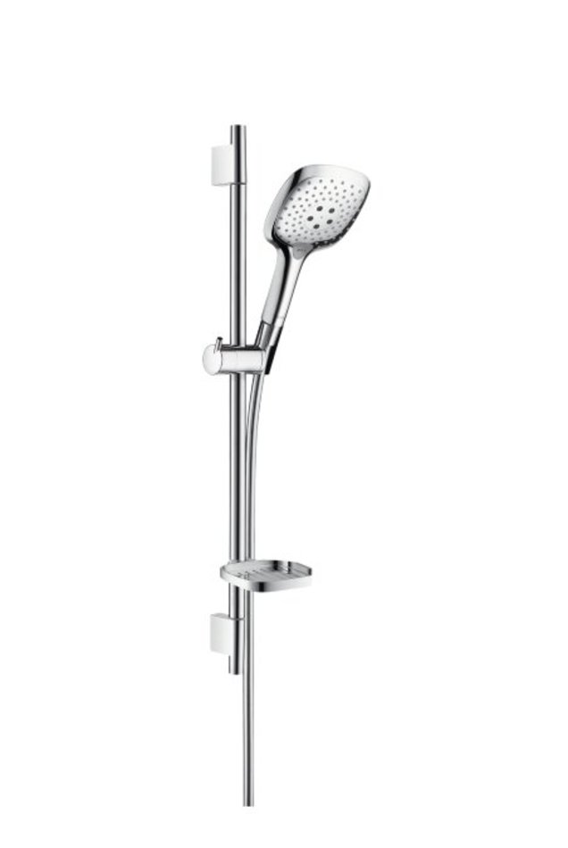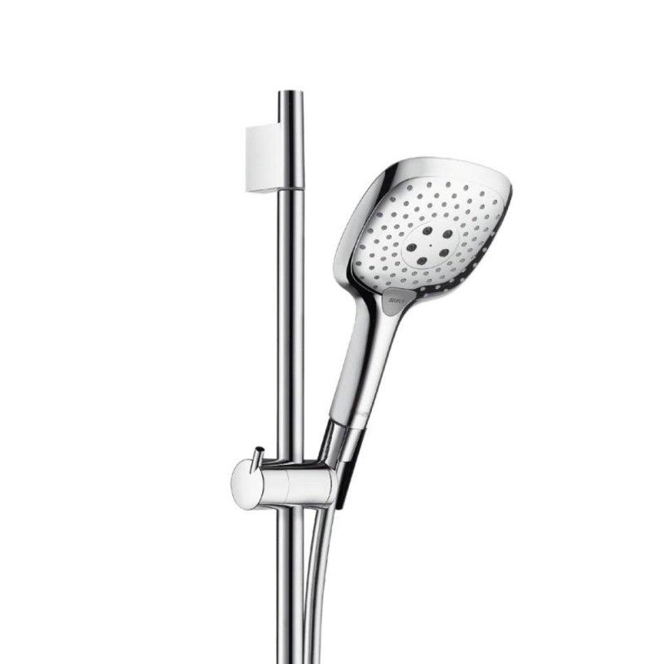 Душевой гарнитур Hansgrohe Raindance Select 150 3jet 27856000, корпус хром, лицевая часть белая 150 мм