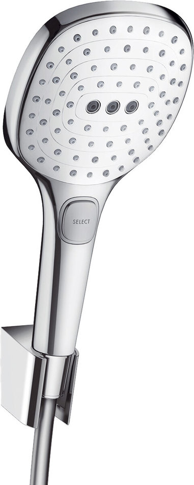 Душевой гарнитур Hansgrohe Raindance Select E 26720400, 3 режима струи, корпус хром, лицевая часть белая