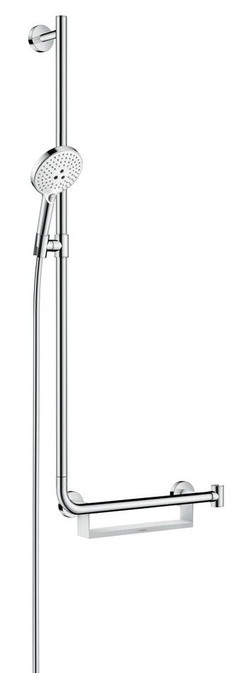Душевой гарнитур Hansgrohe Raindance Select S 120 3jet 26324400, штанга 110 см, корпус хром, лицевая часть белая, 3 режима струи