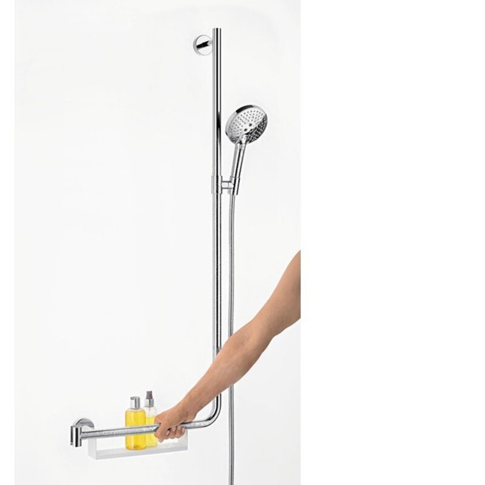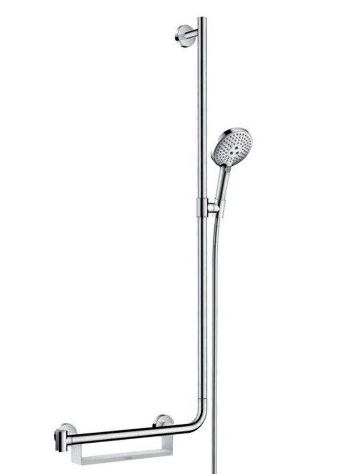 Душевой гарнитур Hansgrohe Raindance Select S 120 3jet EcoSmart 9 л/мин штанга 110 см справа 26327000, корпус хром, лицевая часть белая, 3 режима струи
