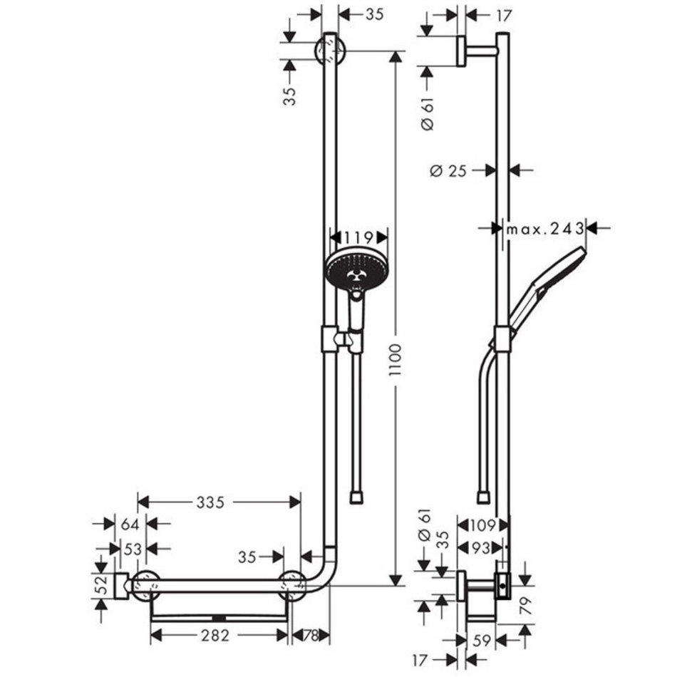 - настенное крепление может быть использовано как поручень 25 mm