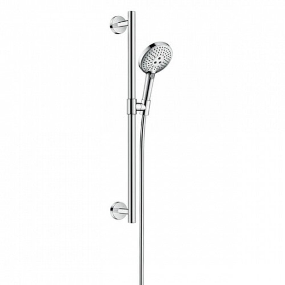 Душевой гарнитур Hansgrohe Raindance Select S 120 3jet EcoSmart 9 л/мин/UComfort штанга 65 см 26321400, корпус хром, лицевая часть белая, 3 режима струи