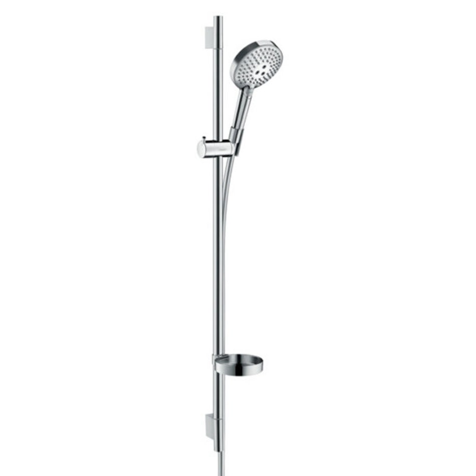 Душевой гарнитур Hansgrohe Raindance Select S 120 3jet PowderRain 27667000, штанга 90 см, корпус хром, лицевая часть белая, 3 режима струи