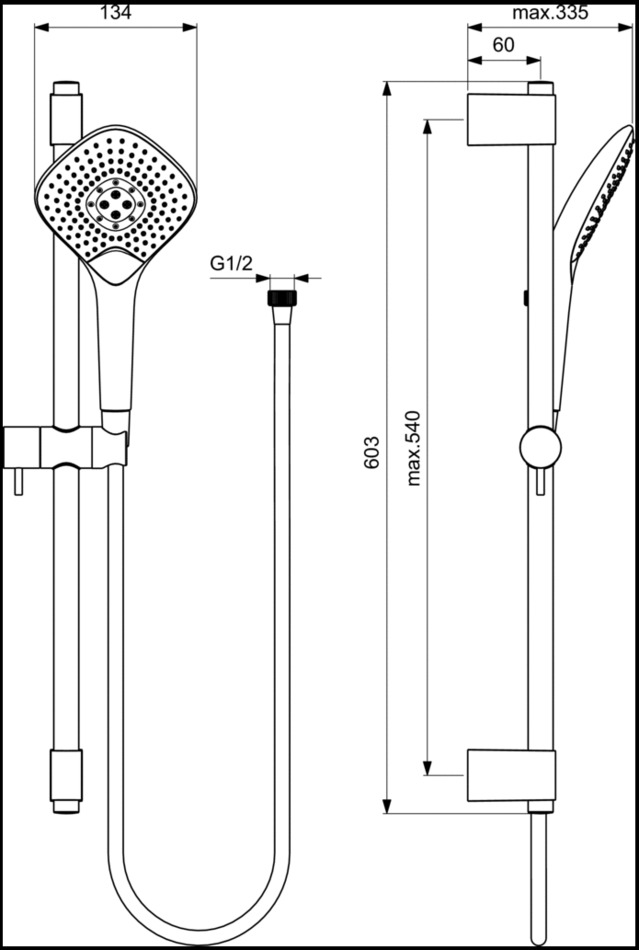 Душевой гарнитур B1762AA Ideal Standard EVO JET DIAMOND XL3, три режима Rain, Drop-jet, Massage, со штангой, цвет хром.