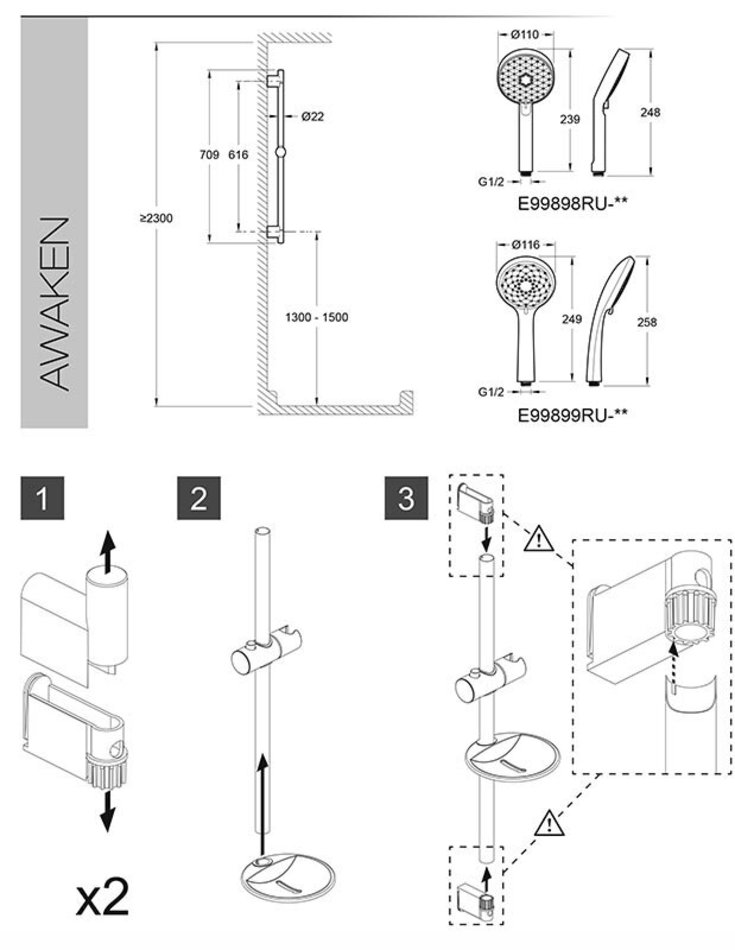 Душевой гарнитур Jacob Delafon Awaken E99898-BL, черный матовый