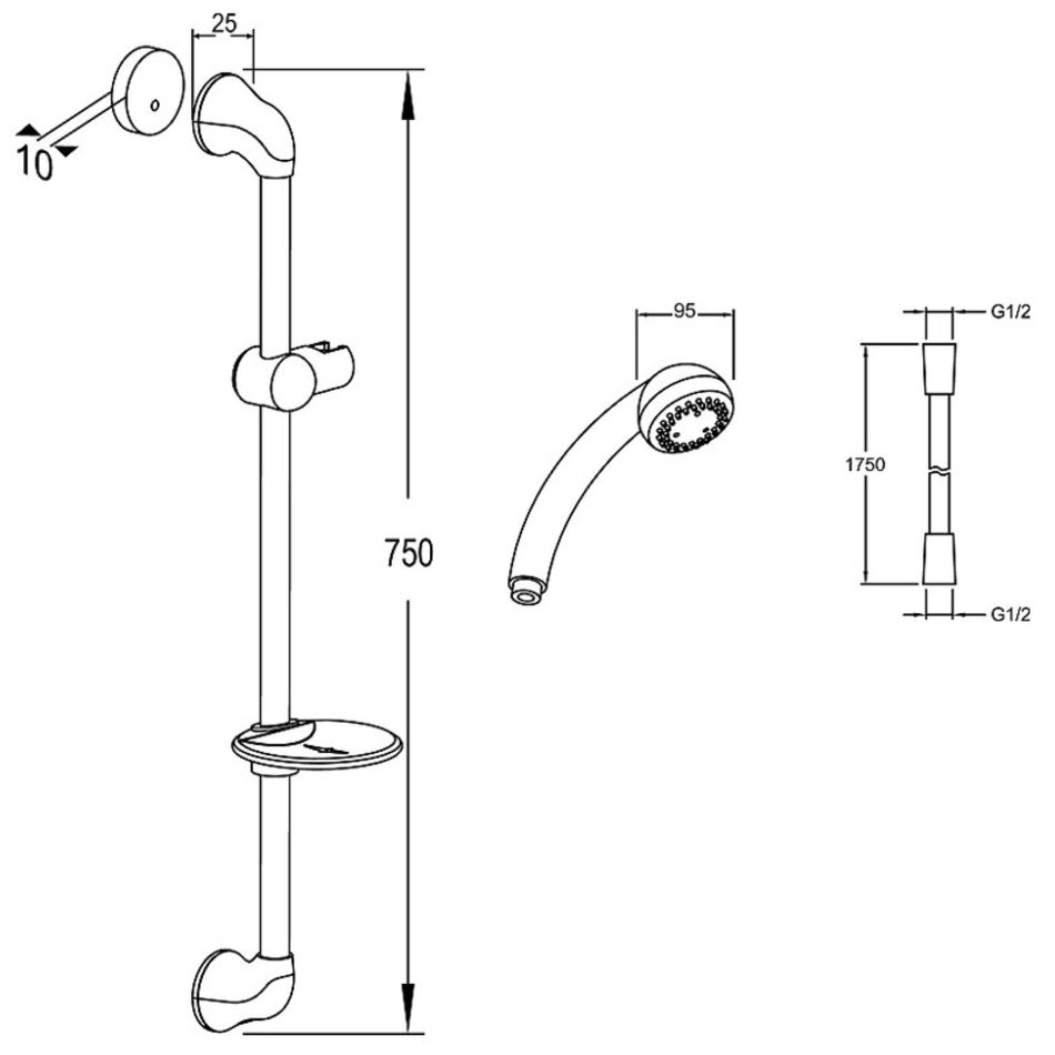 Душевой гарнитур Jacob Delafon Basic 2 ( Бейсик 2 ) E14330 со штангой 75 см.