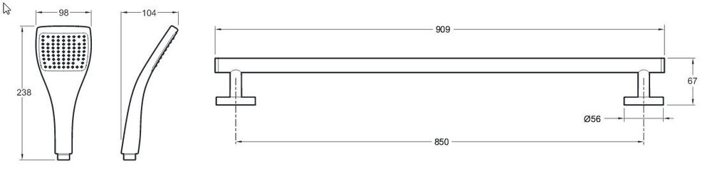 Душевой гарнитур Jacob Delafon EO с душем и метал. штангой 90 см. хром, E99940-CP, 1 режим струи