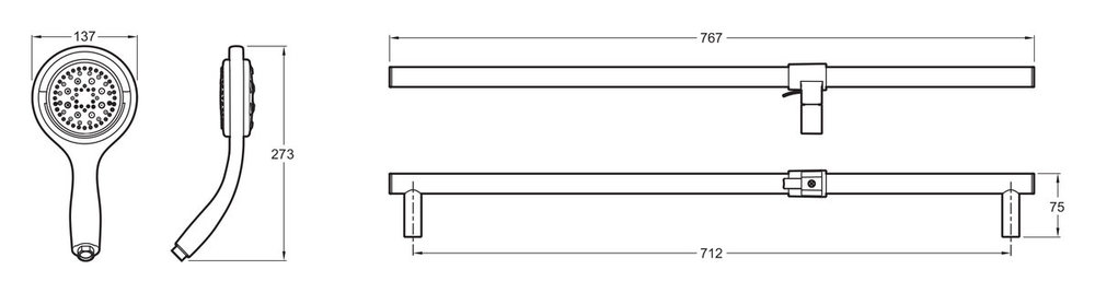 Душевой гарнитур Jacob Delafon Flipside E15865-CP, хром, 76 см