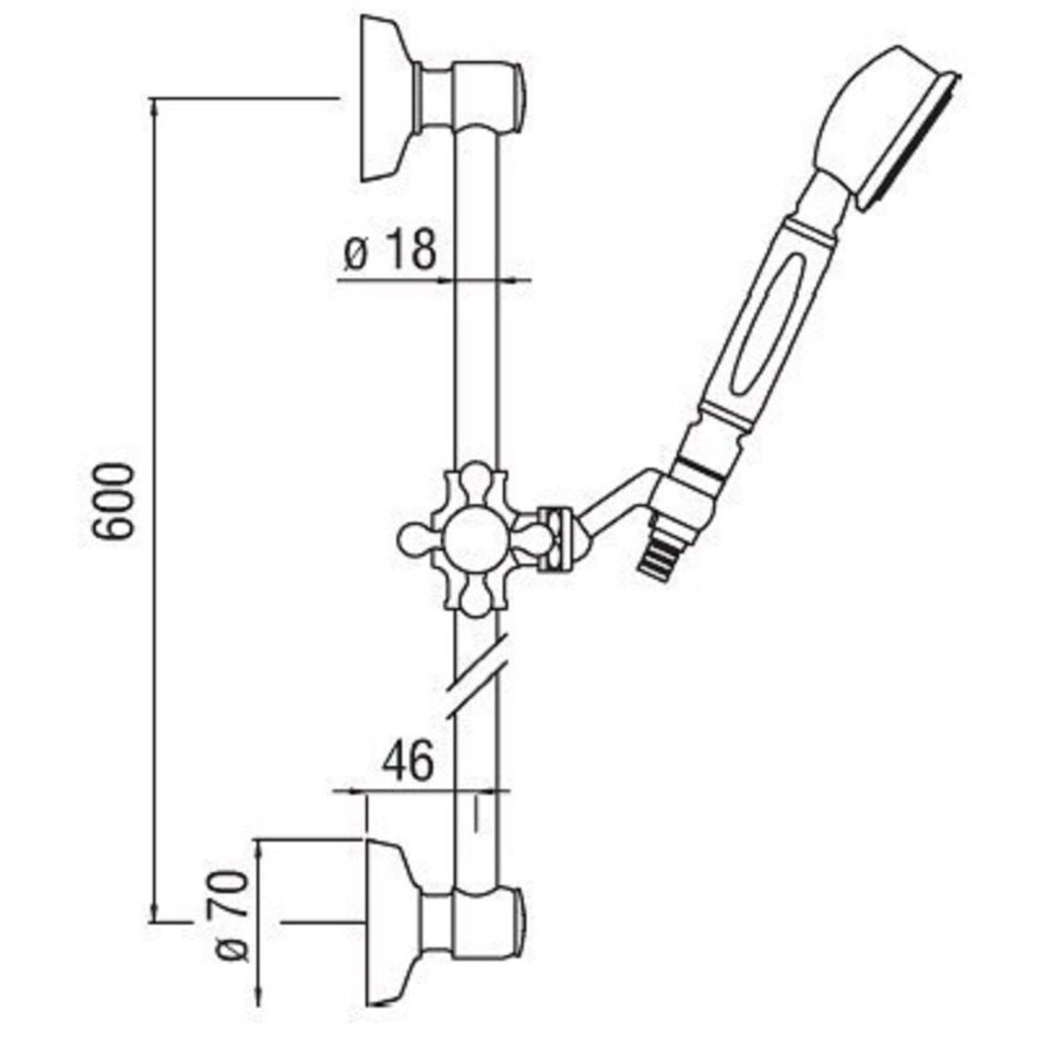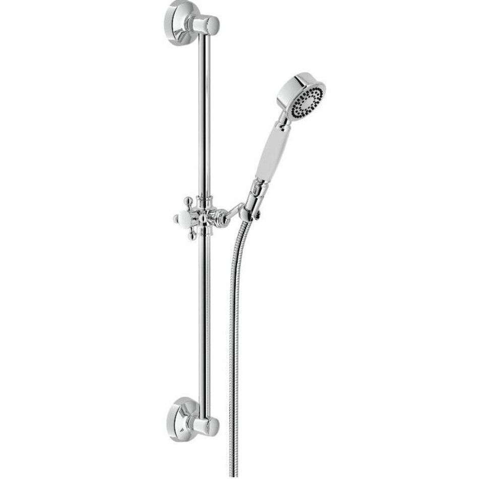 Душевой гарнитур. Межцентровое расстояние 60 см. Скользящий регулируемый держатель ручного душа. Одноструйный ручной душ. Шланг длиной 150 см.