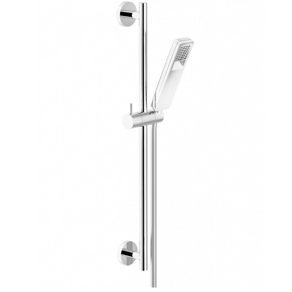 Душевой гарнитур: Штанга 610 мм. Скользящий поворотный держатель ручного душа. Одноструйный ручной душ. Шланг длиной 150 см. Цвет: белый.