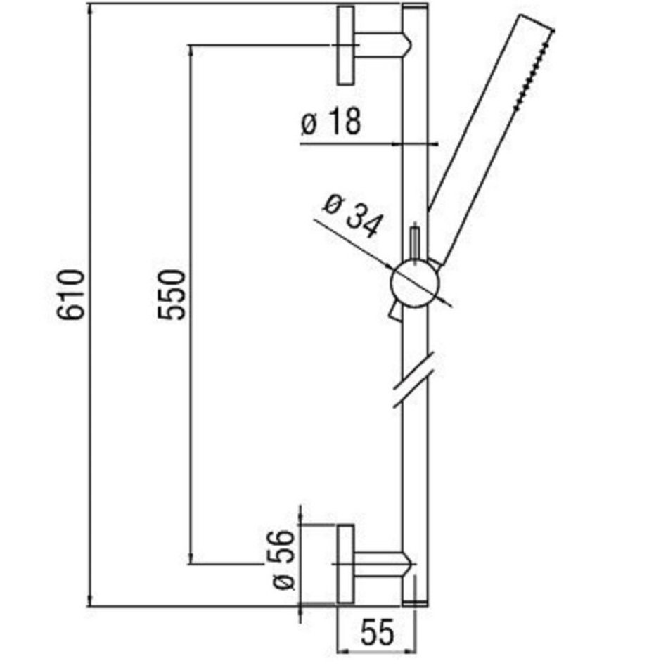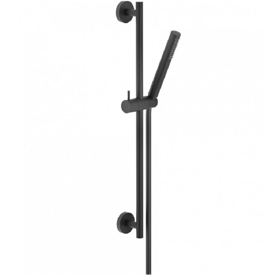 Душевой гарнитур (чёрный матовый). Межцентровое расстояние 55 см. Скользящий регулируемый держатель ручного душа. Одноструйный ручной душ. Шланг длиной 150 см.