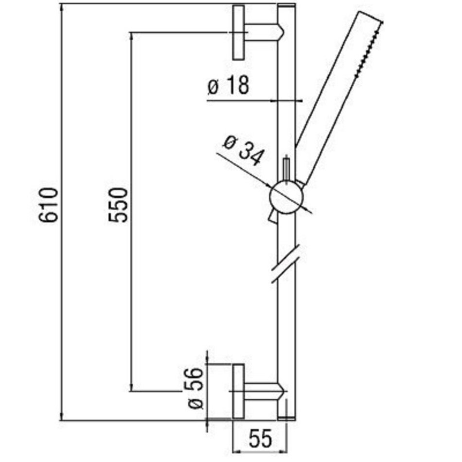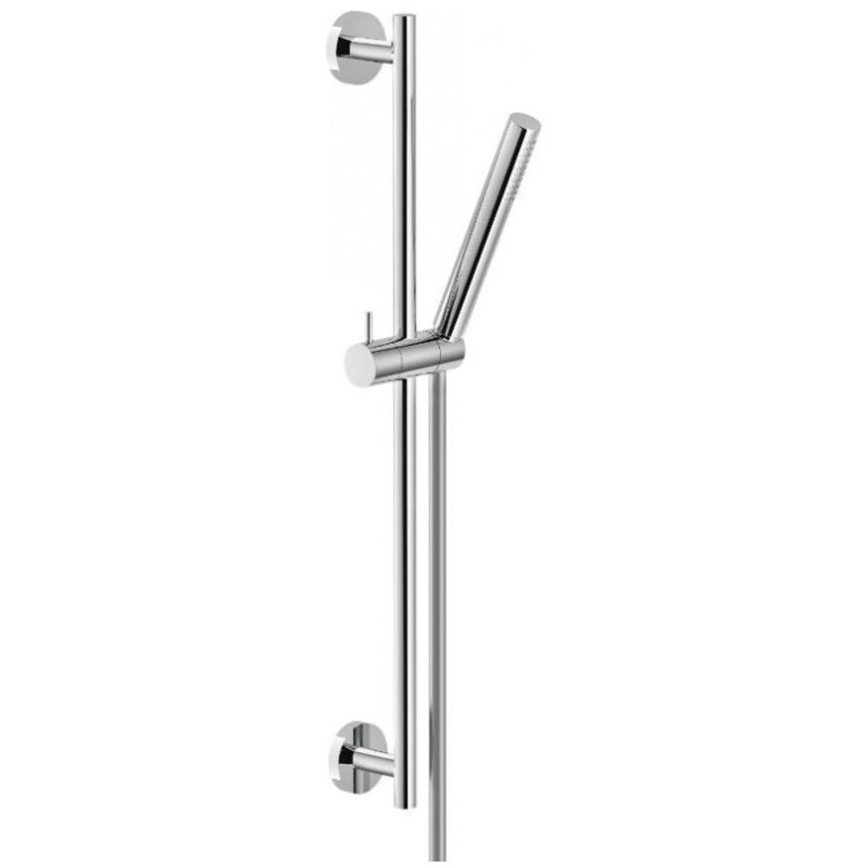 Душевой гарнитур (хром). Межцентровое расстояние 55 см. Скользящий регулируемый держатель ручного душа. Одноструйный ручной душ. Шланг длиной 150 см.