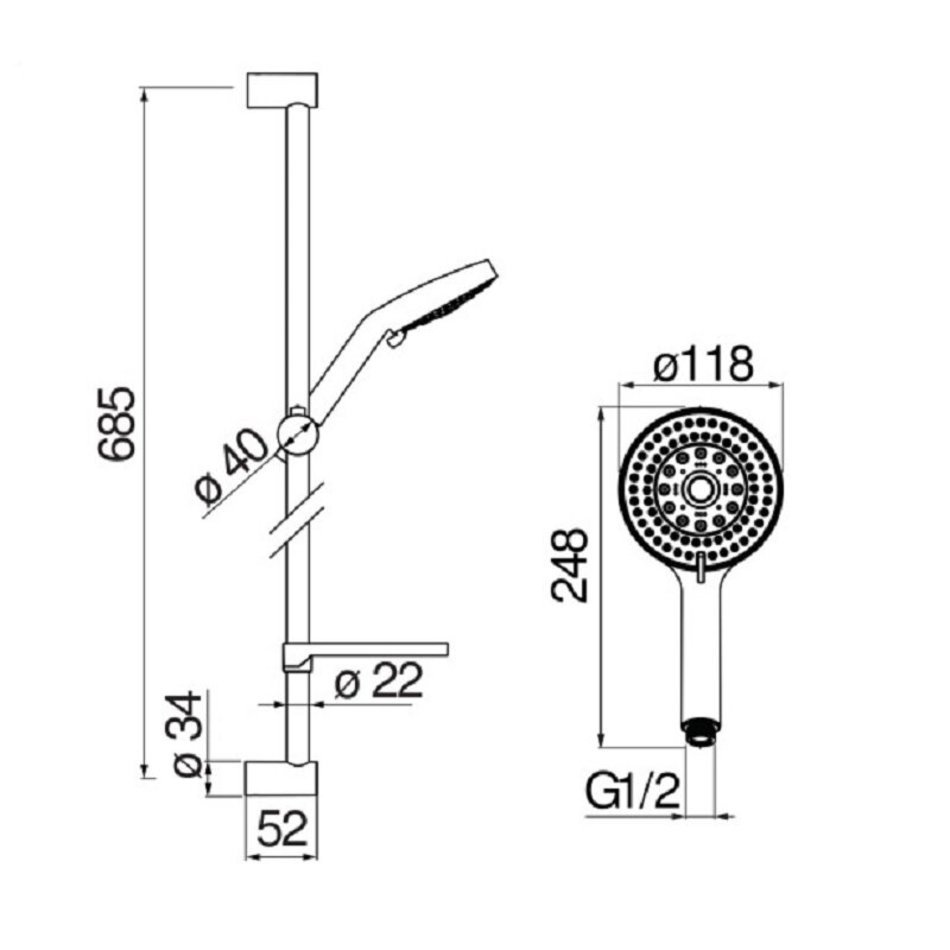 Душевой гарнитур Nobili, 5 режимов лейки, 68,5 см, цвет хром, AD140/66CR