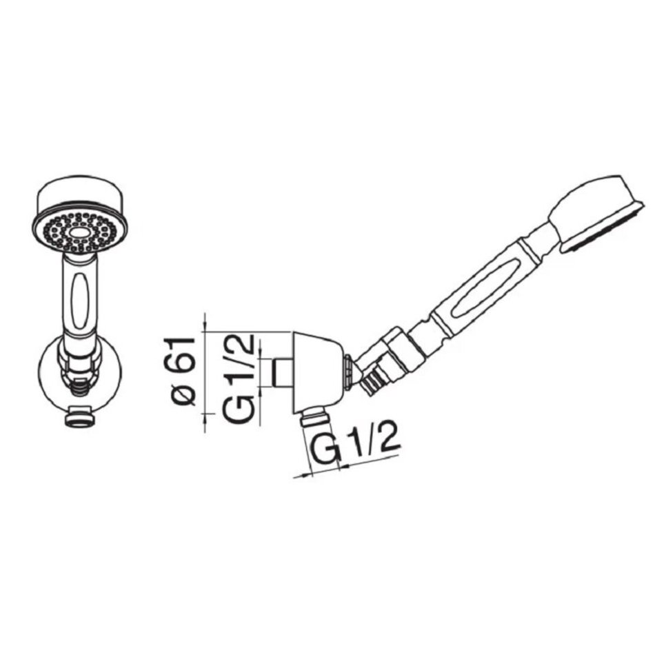 Душевой гарнитур (чёрный). Соединение воды Ø 1/2”. Регулируемый держатель ручного душа. Одноструйный ручной душ. Шланг длиной 150 см.