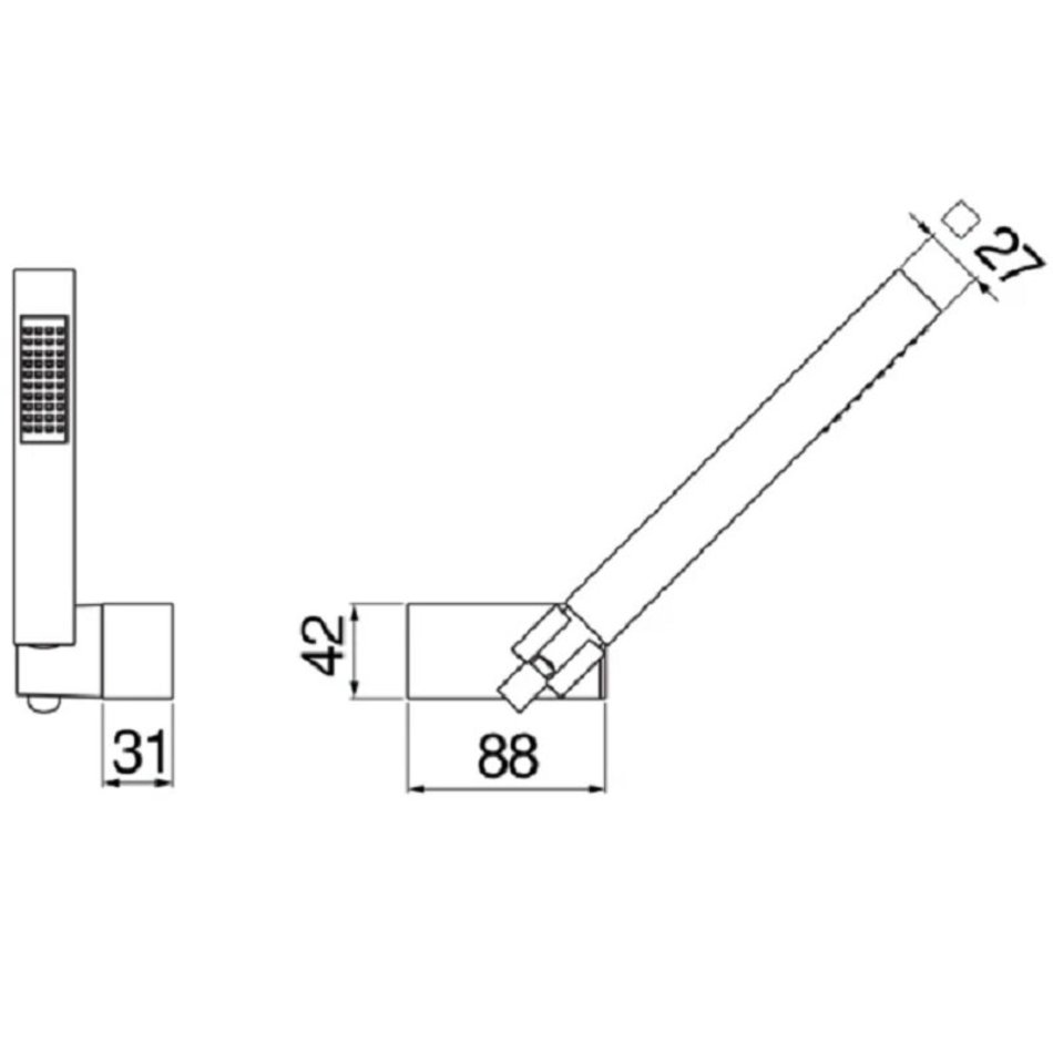 Душевой гарнитур. Регулируемый держатель ручного душа. Одноструйный ручной душ. Шланг длиной 150 см.