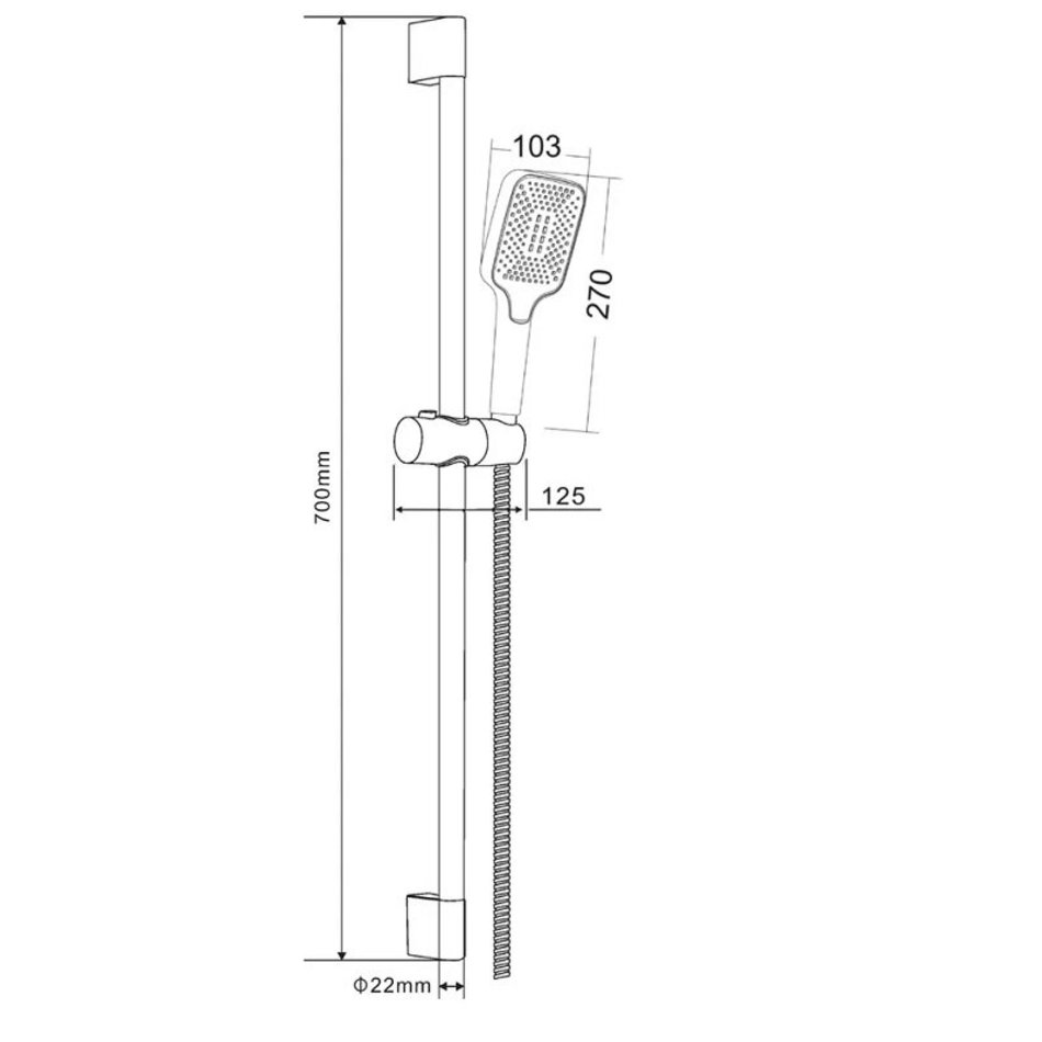 Душевой гарнитур Orange в цвете глянцевый хром украсит интерьер ванной комнаты в современном стиле. Гарнитур включает в себя: ручной душ (103х103 мм) - один режим струи, форсунки с функцией легкого очищения от известкового налета, система AIR IN обеспечивает увеличенный напор и вместе с тем сокращает расход воды, материал ABS-пластик; душевой шланг 1500-1800 мм в металлической оплетке, с защитой от перекручивания; держатель ручного душа на штанге с регулировкой угла наклона и по высоте; штанга 700 мм с фиксированными держателями, материал штанги нержавеющая сталь.