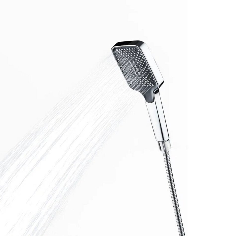 Душевой гарнитур Orange в цвете глянцевый хром украсит интерьер ванной комнаты в современном стиле. Гарнитур включает в себя: ручной душ (103х103 мм) - один режим струи, форсунки с функцией легкого очищения от известкового налета, система AIR IN обеспечивает увеличенный напор и вместе с тем сокращает расход воды, материал ABS-пластик; душевой шланг 1500-1800 мм в металлической оплетке, с защитой от перекручивания; держатель ручного душа на штанге с регулировкой угла наклона и по высоте; штанга 700 мм с фиксированными держателями, материал штанги нержавеющая сталь.