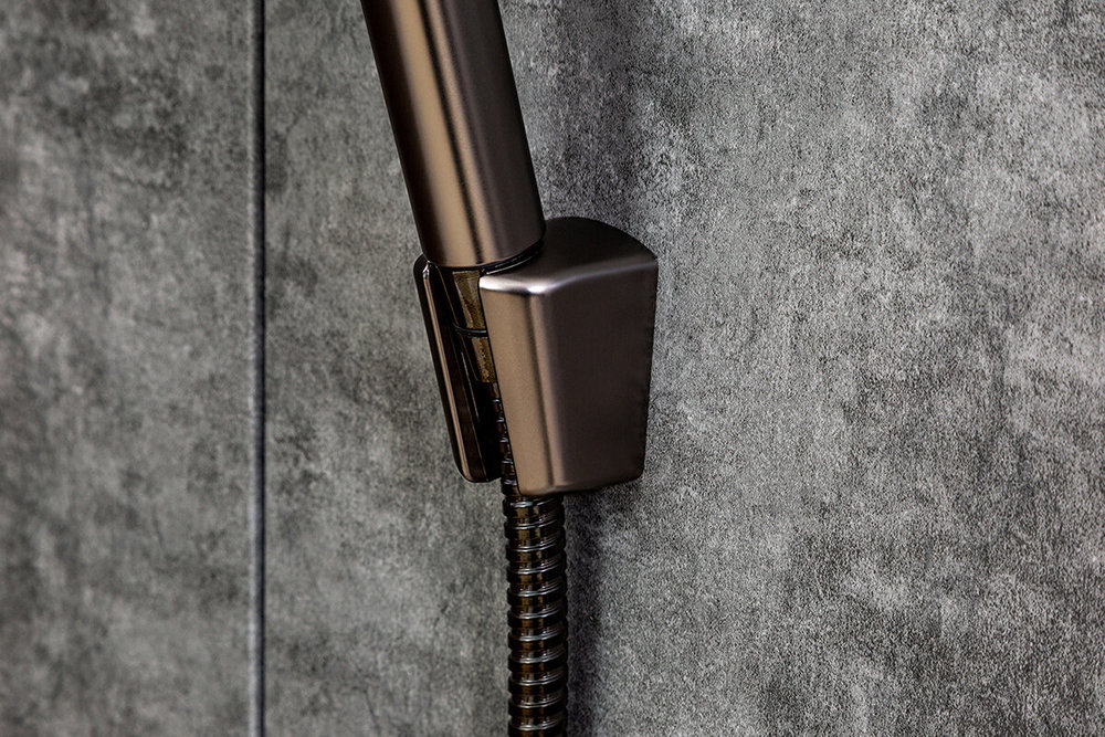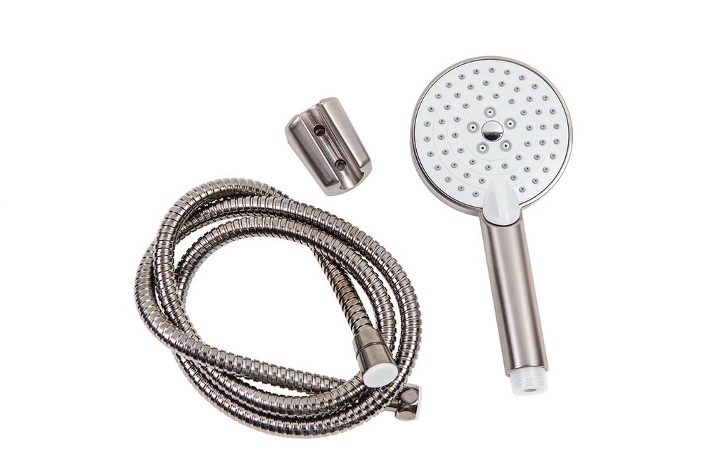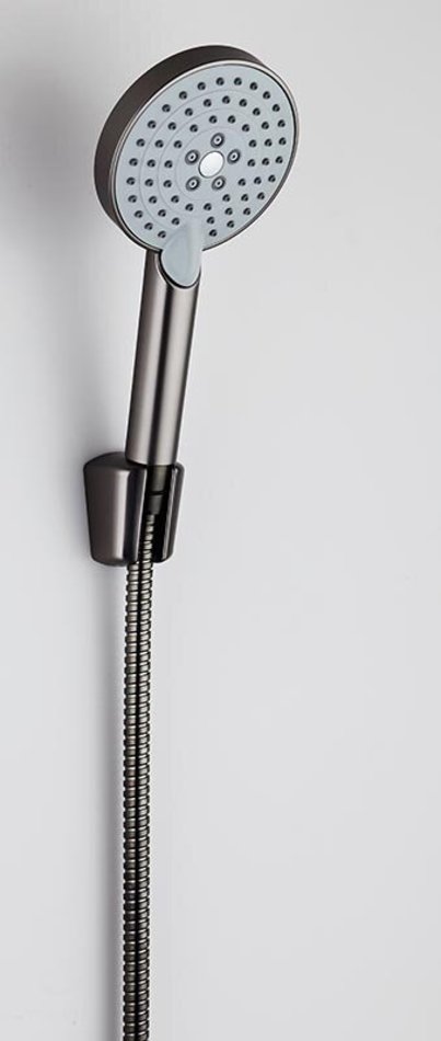 - Душевой набор: 3- режимный ручной душ 110 мм с силиконовыми наконечниками, шланг 1500 мм, настенный держатель,(цвет: Графит)