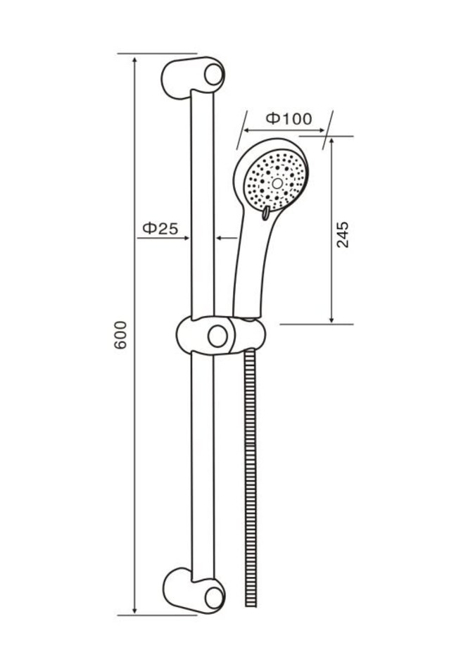 Комплектация: шланг для душа, душевая лейка, душевая штанга, держатель лейки, держатели штанги, инструкция