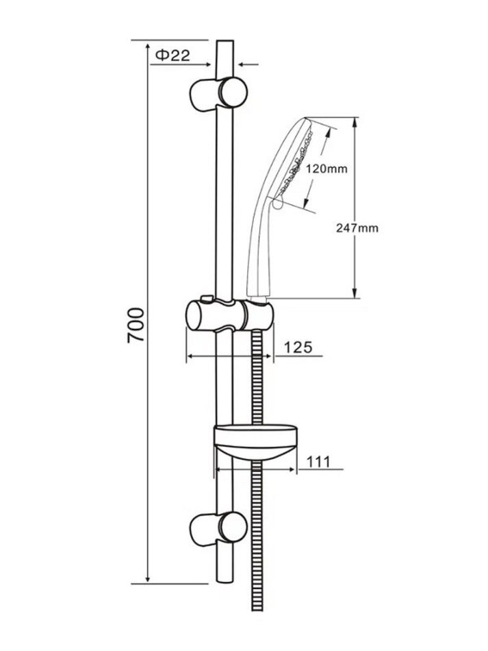 - Шланг для душа, душевая лейка, душевая штанга, держатель лейки, держатели штанги, мыльница, к-т креплений, инструкция