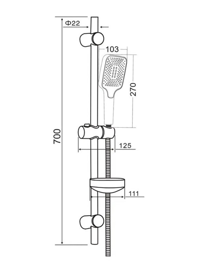 - Держатель ручного душа на штанге с регулировкой угла наклона и по высоте;
