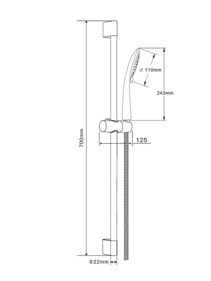 - Держатель ручного душа на штанге с регулировкой угла наклона и по высоте;