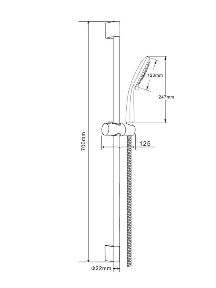 - Держатель ручного душа на штанге с регулировкой угла наклона и по высоте;