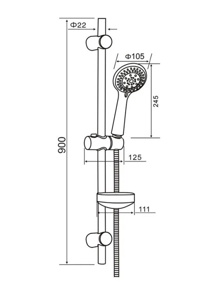 - Шланг для душа, душевая лейка, душевая штанга, держатель лейки, держатели штанги, мыльница, к-т креплений, инструкция