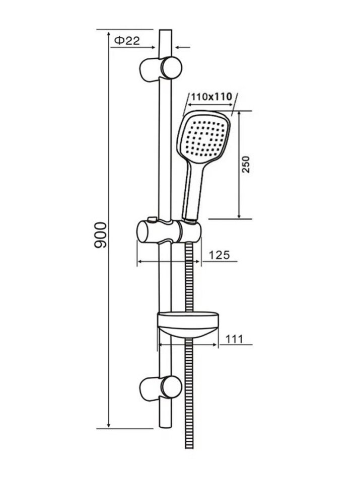 - Держатель ручного душа на штанге с регулировкой угла наклона и по высоте;Штанга 900 мм с подвижными держателями (возможность установки в старые отверстия), материал штанги нержавеющая сталь;