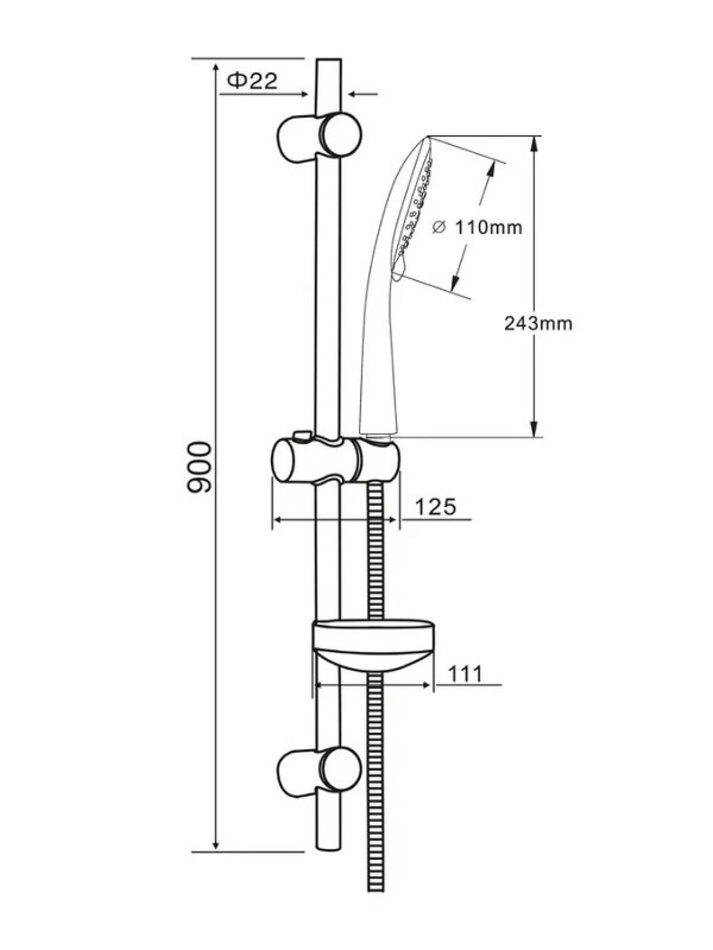 - Шланг для душа, душевая лейка, душевая штанга, держатель лейки, держатели штанги, мыльница, к-т креплений, инструкция