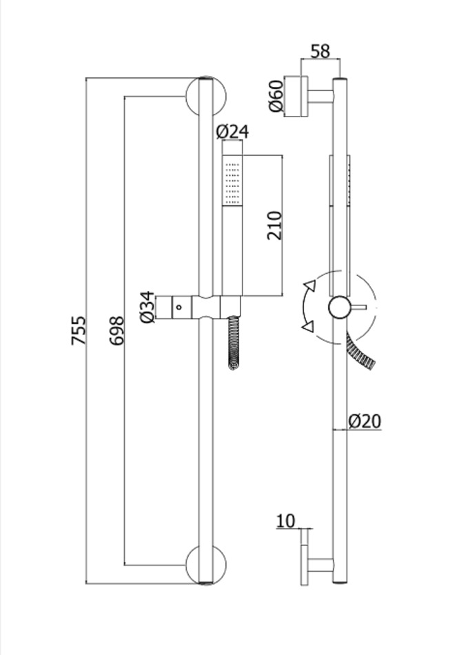 Поворотные подвижные крепления для душа из металла
