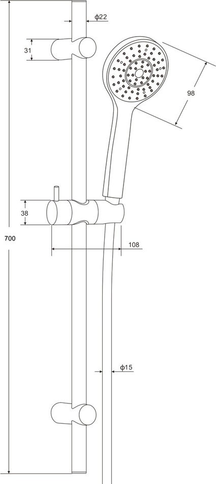 - Оснащение: душевой шланг / держатель для душа / душевая штанга
