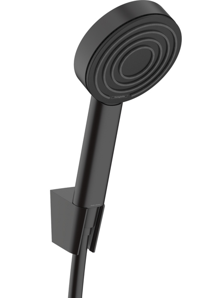Душевой набор Hansgrohe Pulsify S, 1 режим струи, шланг 125 см, черный матовый, диск графит, 24301670