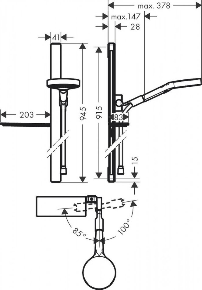 - держатель для ручного душа регулируется в положении 90°, поворачивается влево и вправо, вверх и вниз