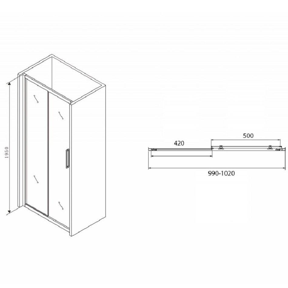 В комплекте поставки: душевая дверь, двойные ролики, увеличенные металлические ручки.