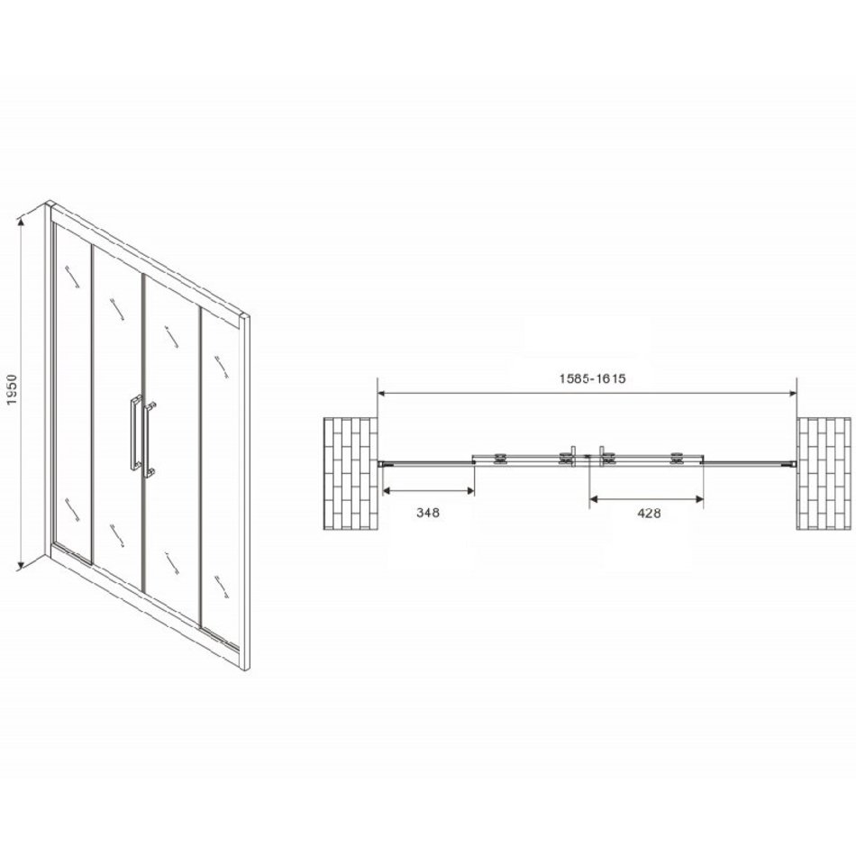 Душевая дверь Abber Schwarzer Diamant, 160 х 195 см, стекло прозрачное, профиль черный, AG33160BH
