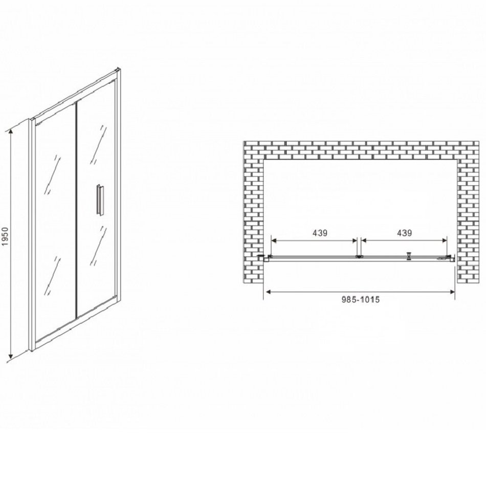 Душевая дверь Abber Sonnenstrand, 100 х 195 см, профиль черный, стекло прозрачное, AG07100B