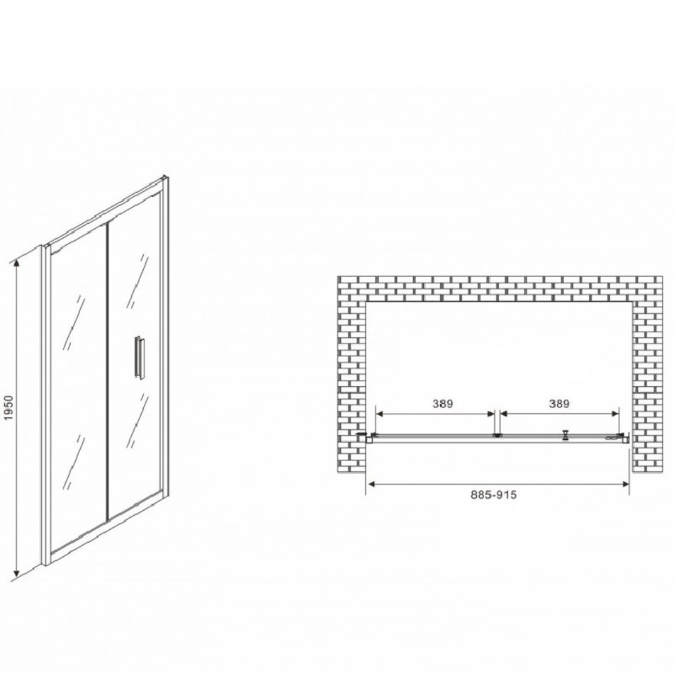 Душевая дверь Abber Sonnenstrand, 90 х 195 см, профиль хром, стекло прозрачное, AG07090