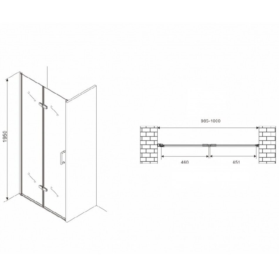 Душевая дверь Abber Zart, 100 х 195 см, стекло прозрачное, профиль хром, AG08100P