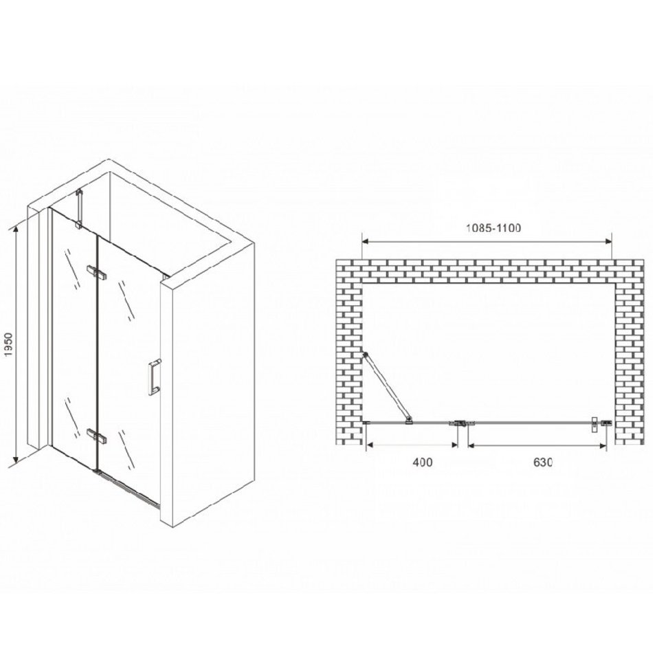 Душевая дверь Abber Zart, 110 х 195 см, стекло прозрачное, профиль хром, AG08110
