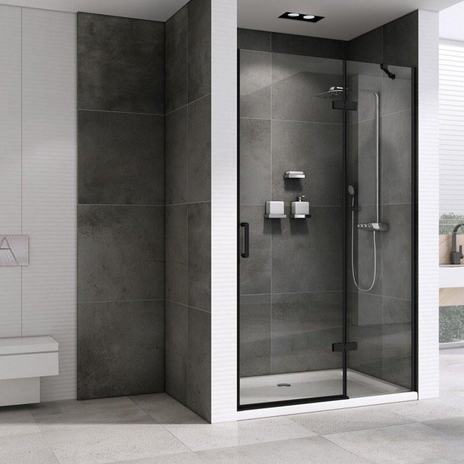Душевая дверь Abber Zart, 120 х 195 см, стекло прозрачное, профиль черный, AG08120B